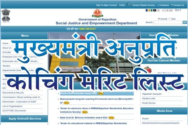 राजस्थान मुख्यमंत्री अनुप्रति कोचिंग योजना मेरिट लिस्ट 2022