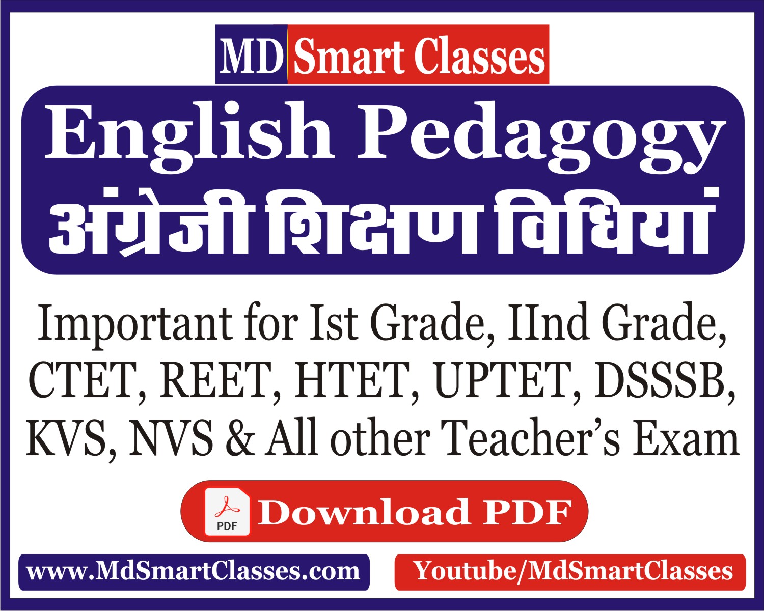 English Pedagogy Notes ( अंग्रेजी शिक्षण विधि ) : Important English Teaching Methods for CTET, REET, UPTET, HTET, DSSSB, TET, RTET, KVS, NVS, 2nd Grade and Other Teacher Recruitment Exams. The link is given below. You can download PDF file of notes by clicking on it.
