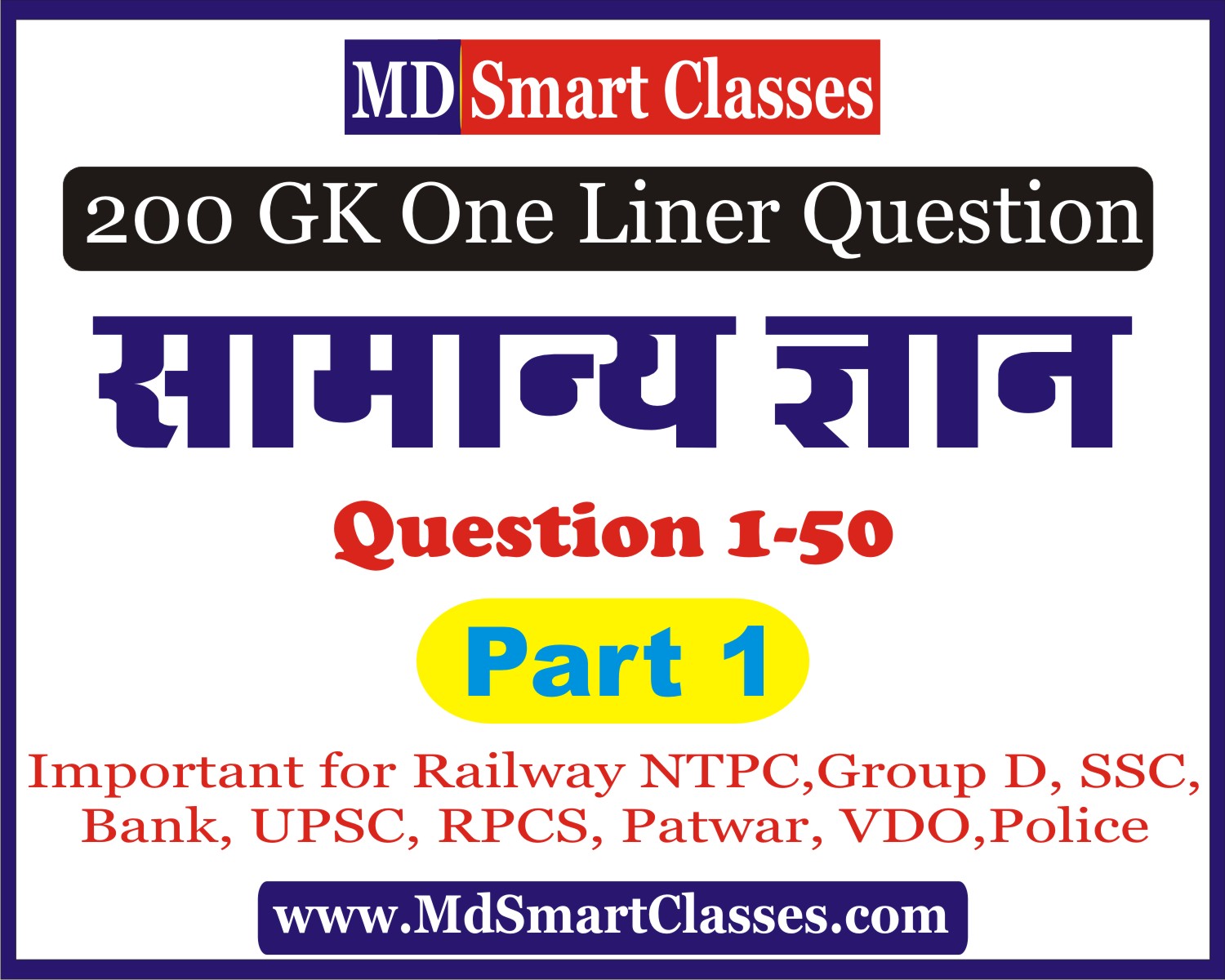 GK ONE LINER QUESTION IN HINDI 1-50 | 200 One Liner GK Question in Hindi | One Liner GK Question in Hindi PDF