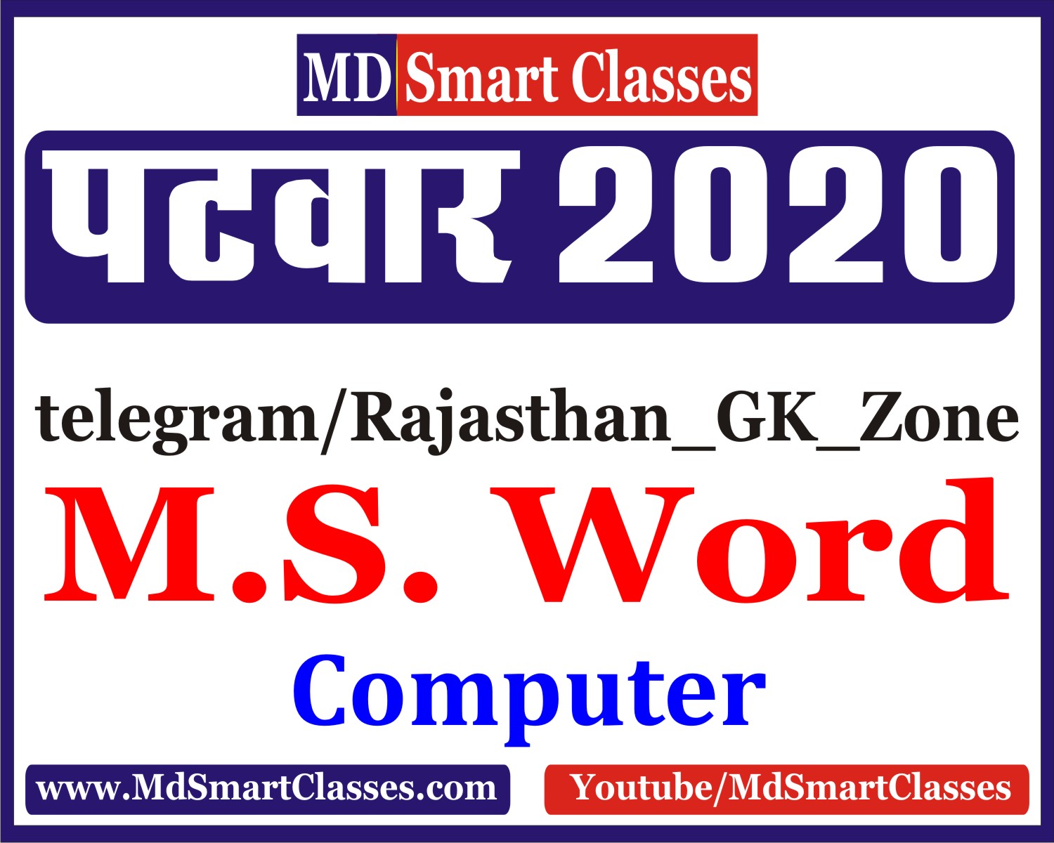 Daily Current Affairs, Exam Model Paper, GK, Gen. Science, Hindi, Computer, Math, Reasoning, REET, CTET, Patwar,Police, Gramsevak, Teacher Exams Videos, Latest Govt Jobs News Etc. Subscribe Our Youtube Channel Md Smart Classes Click Here to Subscribe Now |