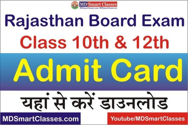 राजस्थान बोर्ड कक्षा 10वीं व 12वीं एडमिट कार्ड जारी (Rajasthan Board Exam Admit Card 2022) : बोर्ड परीक्षा वर्ष 2022 हेतु उच्च माध्यमिक / वरिष्ठ उपाध्याय परीक्षा के प्रवेश पत्र एवं माध्यमिक / प्रवेशिका / व्यावसायिक परीक्षा के प्रवेश पत्र दिनांक 15.03.2022 को बोर्ड की वेबसाईट पर अपलोड किये जायेंगे, जिन्हें संबंधित शाला प्रधान / अग्रेषण अधिकारी उन्हें पूर्व प्रदत्त आई.डी./ पासवर्ड से डाउनलोड करके प्रवेश पत्रों की हार्ड कॉपी निकालकर उसमें मुद्रित सभी प्रविष्ठियों की भली भांति जांचकर प्रमाणीकरण पश्चात् संबंधित परीक्षार्थियों को वितरित करेंगे।