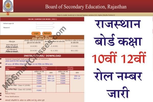 Rajasthan Board 10th 12th Class Roll Number 2022 Important Link