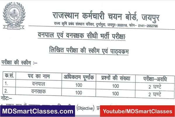 Rajasthan Forest Guard Exam Pattern 2021 :