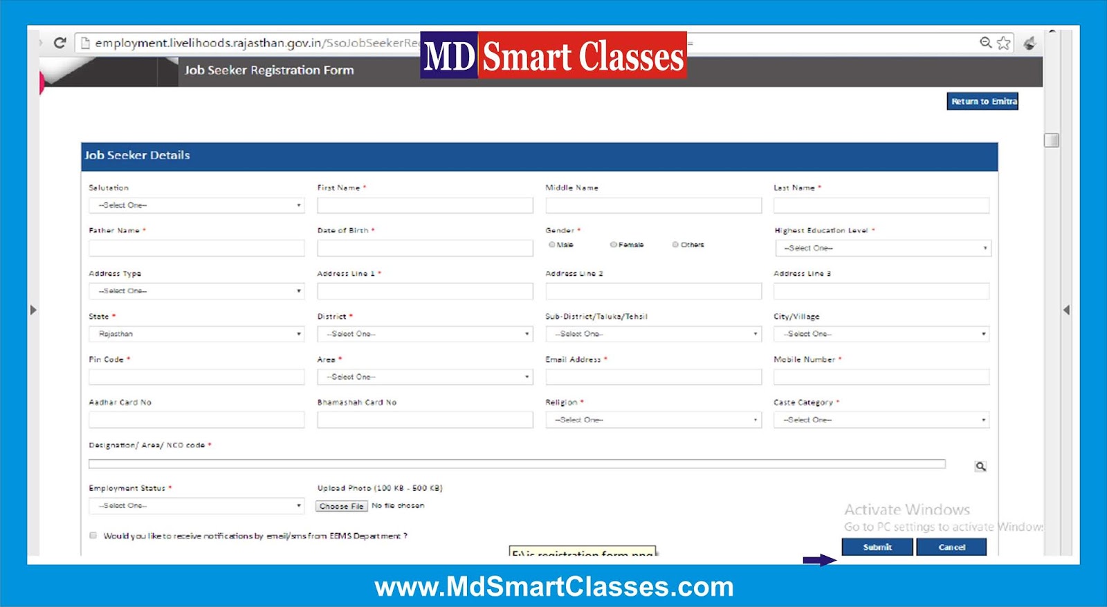 6. अब अपनी Job Seekar Details भरे और बिंदु 8 में बताये गए अपने Documents Details  भरे और फाइल अपलोड करे