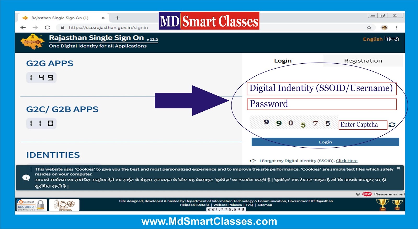 अपनी SSO ID & Password डाले उसके बाद कैप्चा कोड डालकर लॉगिन करे |