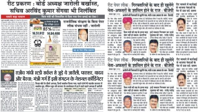 विभिन्न समाचार पत्रों मे प्रकाशित रीट पेपर लीक न्यूज 30 जनवरी 2022