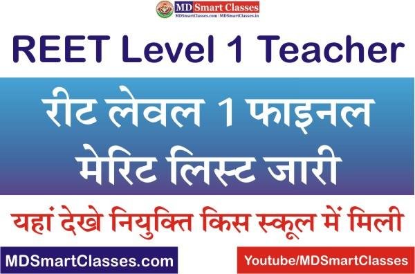 रीट लेवल 1 फाइनल मेरिट लिस्ट जारी (REET Level 1 Final Merit List 2022) : रीट लेवल 1 फाइनल मेरिट लिस्ट का इंतजार कर रहे अभ्यर्थियों के लिए बड़ी खुशखबरी है । शिक्षा विभाग ने रीट लेवल 1 की फाइनल मेरिट लिस्ट जारी कर दी है जिसमे 15500 अभ्यर्थियों को रीट लेवल 1 अध्यापक पद के लिए चयन किया है । आपको बता दे राजस्थान प्रारम्भिक शिक्षा विभाग ने राजस्थान के सरकारी विद्यालयों मे रीट लेवल 1 शिक्षक के 15500 पदों के लिए प्रारम्भिक मेरिट लिस्ट 27 फरवरी 2022 को जारी कर दी है । जिसमे लगभग 31000 अभ्यर्थियों को शामिल किया गया है ।
