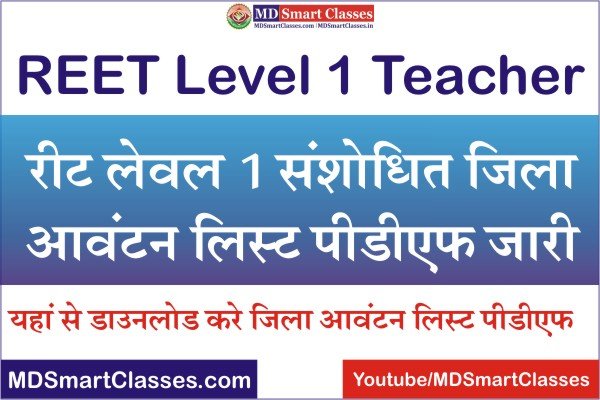 REET Level 1 Revised District Allotment List 2021 : रीट लेवल 1 संशोधित जिला आवंटन लिस्ट जारी ।