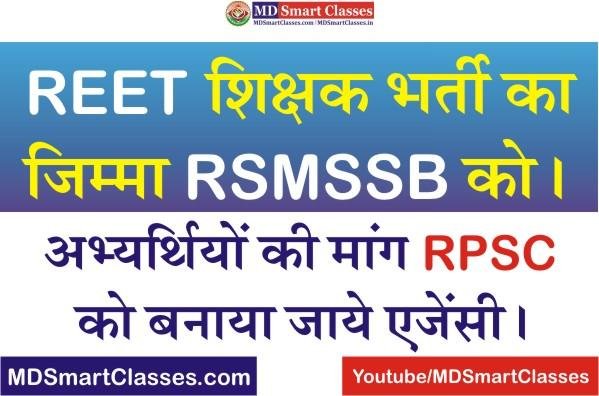 शिक्षक भर्ती का जिम्मा कर्मचारी चयन बोर्ड को (REET Teacher Exam 2022 Agency RSMSSB) : हाल ही में राजस्थान सरकार के द्वारा REET Recruitment 2021 के Level 2 की परीक्षा तो रद्द कर दी गई हैं l परंतु उम्मीदवारों का यह कहना है कि सरकार के द्वारा इस भर्ती की एजेंसी की घोषणा नहीं की गई हैं। वैसे तो तृतीय श्रेणी शिक्षक भर्ती पिछले कई सालों से लगातार विवादों में है, लेकिन फिर भी अभी तक तृतीय श्रेणी भर्ती का स्थाई पैटर्न तथा परीक्षा एजेंसी तय नहीं हो सकी हैं।