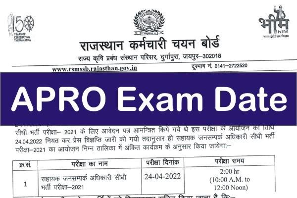 | Rajasthan APRO Exam Date 2021 | 24 April 2022 |