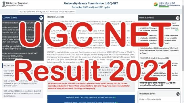 यूजीसी नेट रिजल्ट लेटेस्ट अपडेट 2021